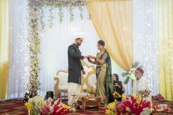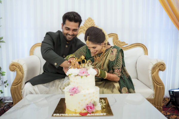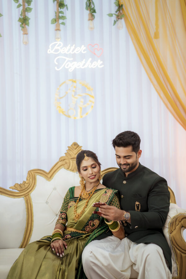 Priyanka & Aniket a story that felt as real as it gets. Set in the heart of Karjat, right in front of her village home, where everything felt familiar, warm, and full of life. The decor wasn’t just beautiful it blended perfectly with the place that holds her roots. But what made it special was them. The way they laughed, the way they argued even over something as simple as cutting the cake. “She wants to cut it.” “He says he will.” And in that little moment, you could see their entire story playful, genuine, and full of love.